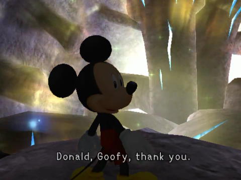 You defeat possessed Riku and retrieves the unconscious body of Kairi... who's a Disney princess and her heart together with 6 others princesses (Snowhite, Aurora, Belle, Cinderella, Alice (?) and Jasmine) the villains had kidnapped in order to open the Keyhole, but Kairi has lost her heart so she is basically a lifeless doll. Turns out her heart was hidden in Soras's heart all along so to release it he uses Riku's blade and stabs himself and seemingly killing himself. Wow, and I thought this was a Disney game. Suicide? Hardcore. Well, since this is Square of course he comes back, but in the form of a heartless and have to travel down the whole castle to catch up with Donald, Goofy and Kairi who escaped Ansem when Riku's spirit stopped him. Kairi senses that it is Sora in the heartless and tries to shield him from the other heartless ready to attack and as in any Disney movie he regains his human form. It's kinda sweet. They escape back to Traverse Town to regroup and after some side questing you can return and seal the keyhole, but Ansem have disappeared. You travel to the End of Worlds and start the decent and the surrounding gets more and more twisted until you reach... NIGHT ON BALD MOUNTAIN